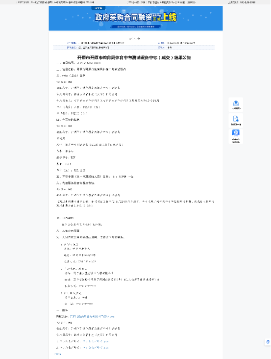 开原市开原市教育局体育中考测试设备中标(成交)结果公告