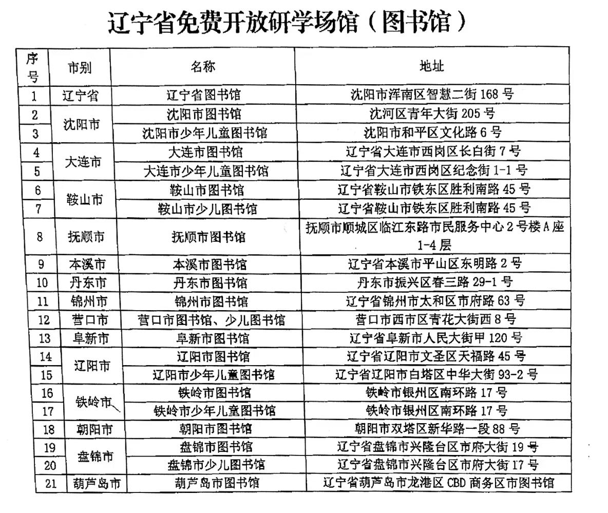 辽宁省免费开放研学场馆(博物馆、图书馆)