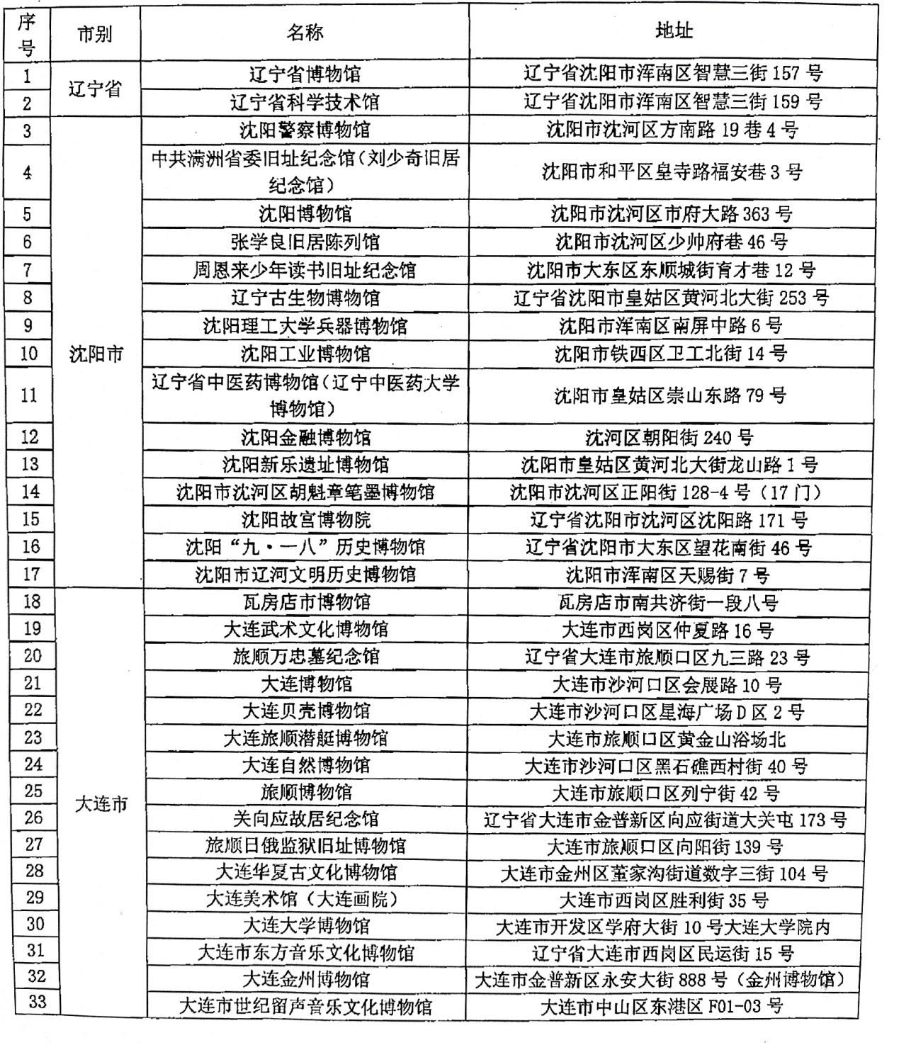 附件:1.辽宁省免费开放研学场馆(博物馆、图书馆)