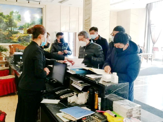 随后,检查组对三家获准营业宾馆的入住人员登记、消杀、垃圾处理、疫情防护用品准备、员工的疫情防护培训等情况进行了详细的检查,对督查结果表示满意。对我局所辖经营场所疫情防控工作的高标准、严要求给予充分肯定。